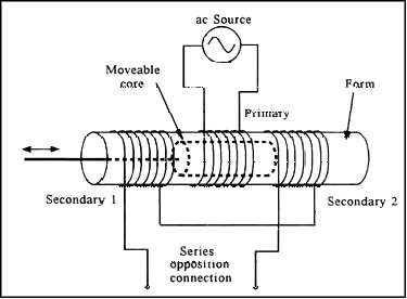 Linear variable differential transformer (LVDT) is used to measure position and . The Linear Variable Differential Transformer is a position-sensing device that provides an AC output voltage proportional to the displacement of its core passing through its windings. LVDTs provide linear output for small displacements where the core remains within the primary coils. The exact distance is a function of the geometry of the LVDT.