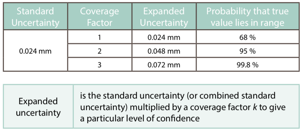 Both of these uncertainties need to be expressed in similar terms so that you can compare and combine them. So you need to associate a number – called a “standard uncertainty” – with each term.